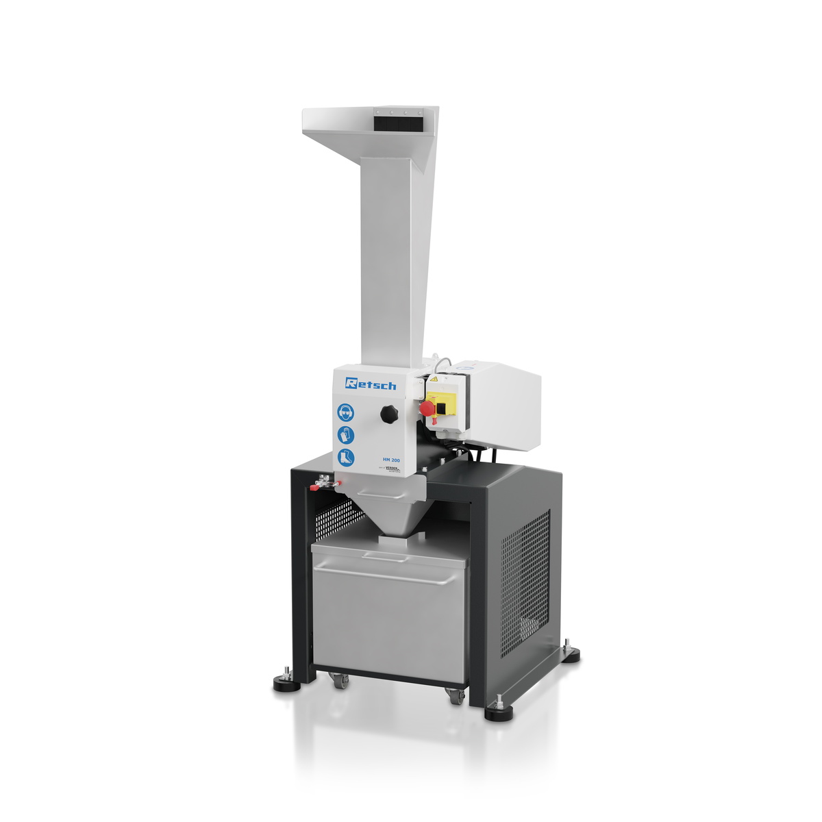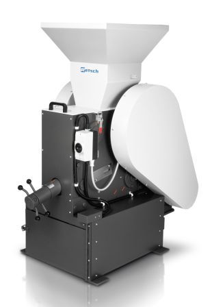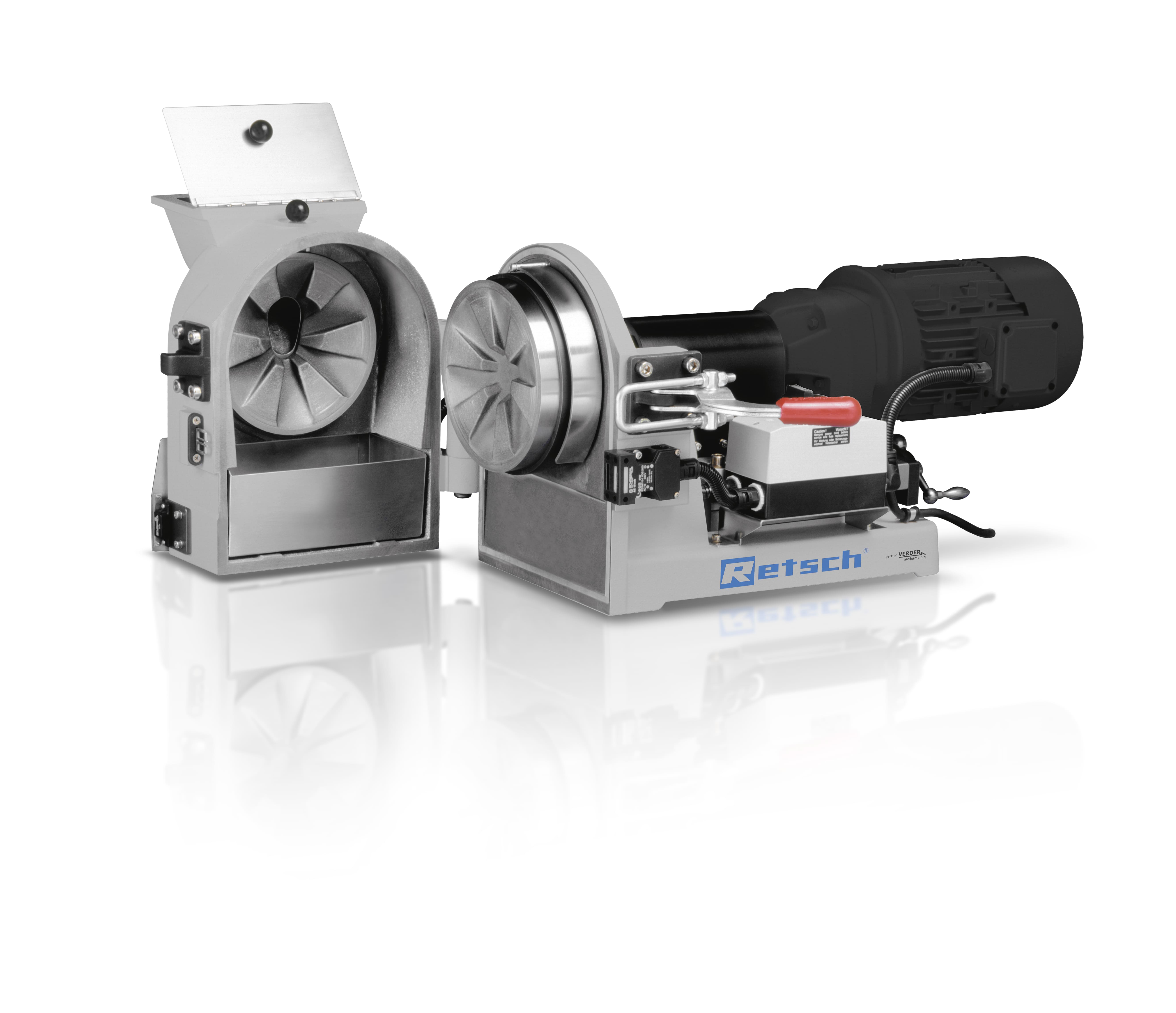 Как только размер частиц материала становится меньше заданной ширины щели, он попадает в съёмный приемный сосуд. Непрерывное задание ширины щели со шкалой гарантирует оптимальное измельчение материала в соответствии с заданной шириной щели.